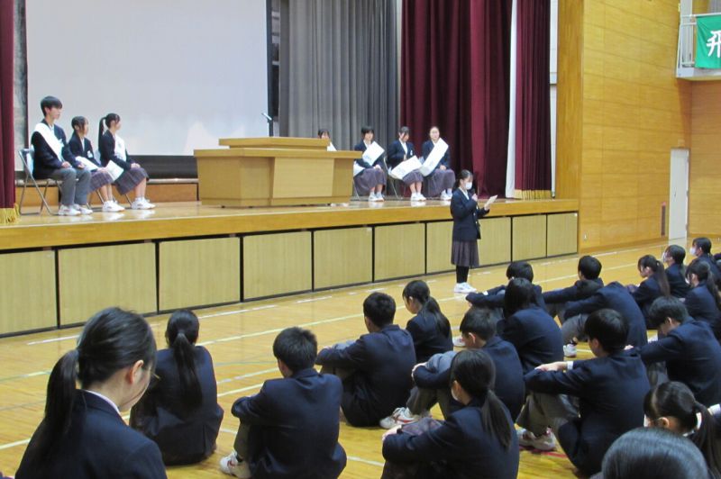 新しい生徒会長と生徒会副会長を決める選挙に、7人の2年生が立候補し、立ち合い演説会と選挙を行いました。選挙運動期間中は、朝のあいさつ運動や教室訪問を通して公約の説明や投票の呼びかけを行いました。立候補者全員から、本気で美木中学校をより良くしていこうという思いが伝わってきました。みんなで新執行部を支え、新生徒会を盛り上げていきましょう。